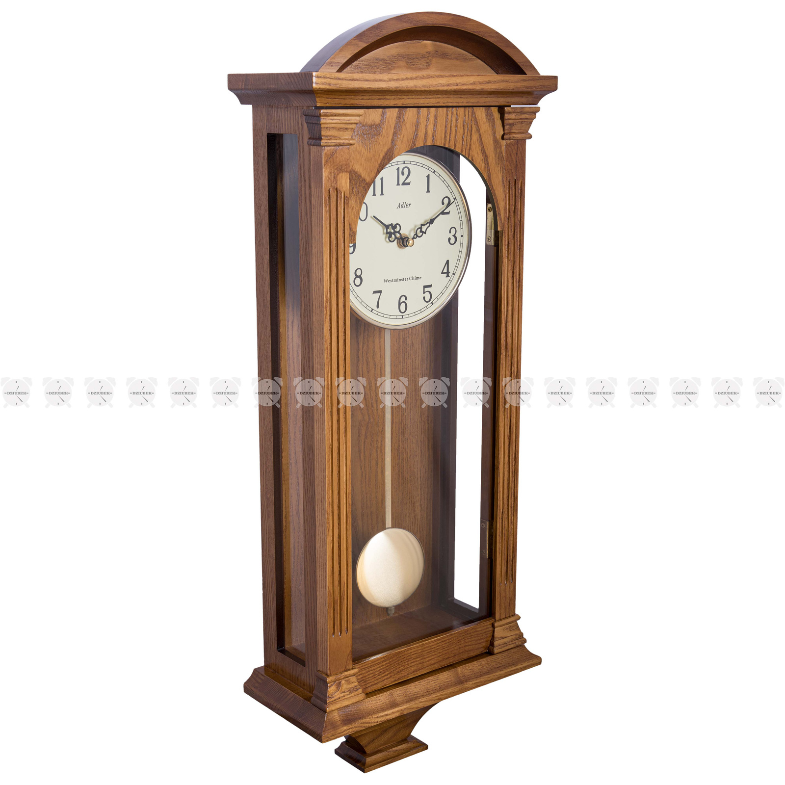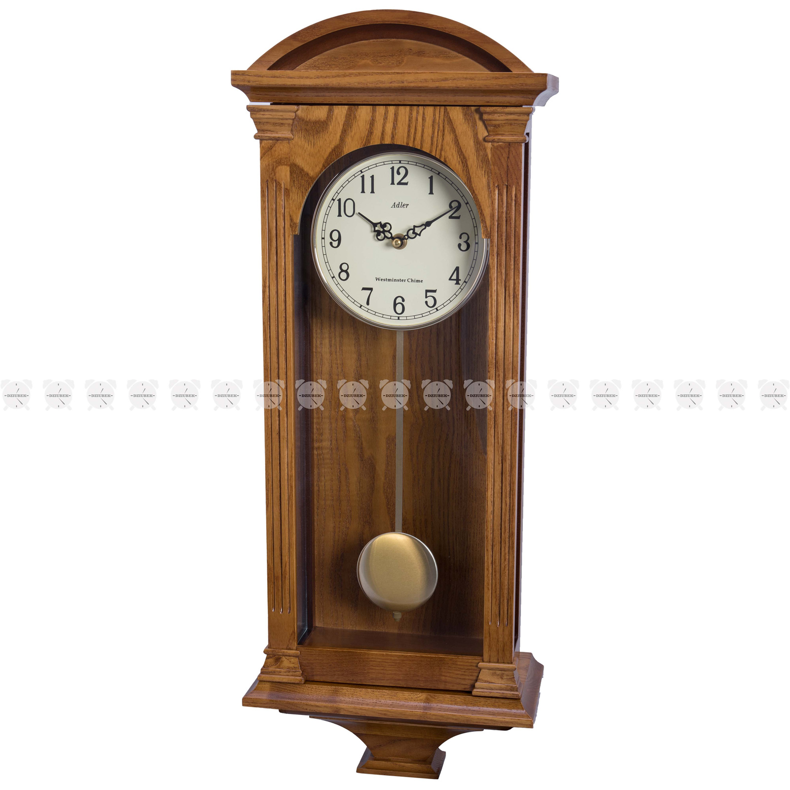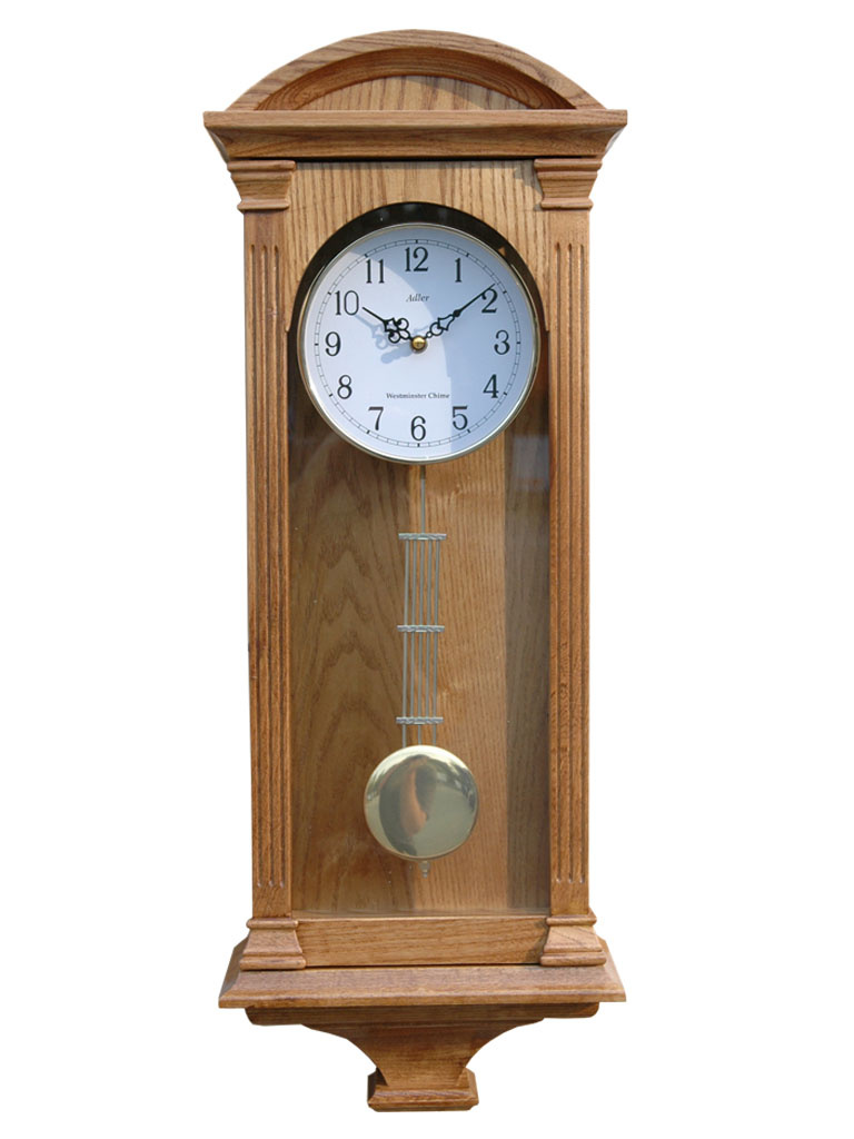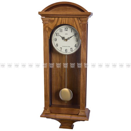Zegar kwarcowy w klasycznej prostej skrzynce drewnianej. Zasilany bateriami.