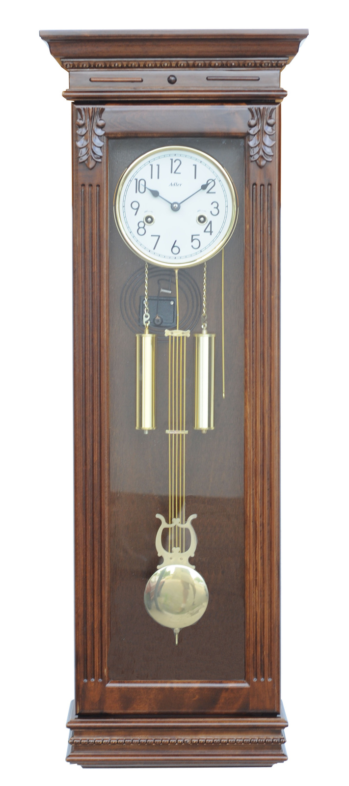 Zegar mechaniczny Adler 11000 to połączenie klasycznego piękna z kunsztem zegarmistrzowskim. Jego elegancka drewniana obudowa, starannie wykończona w odcieniach orzecha lub jasnego dębu wprowadza do wnętrza ciepło, styl i ponadczasowy charakter.