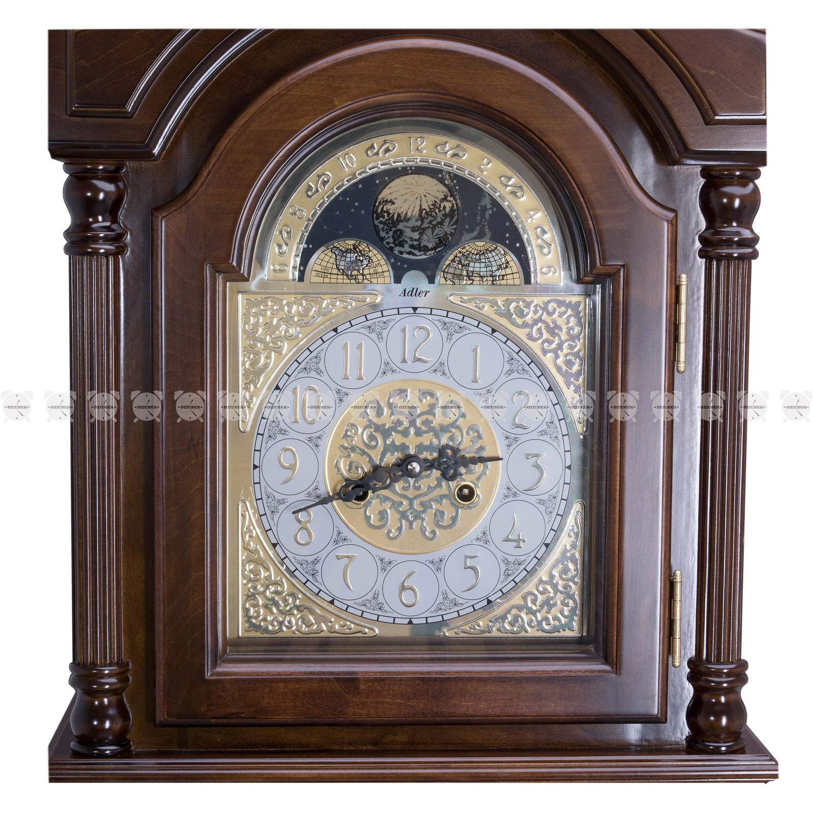 - Drewniany mechaniczny zegar podłogowy firmy Adler.