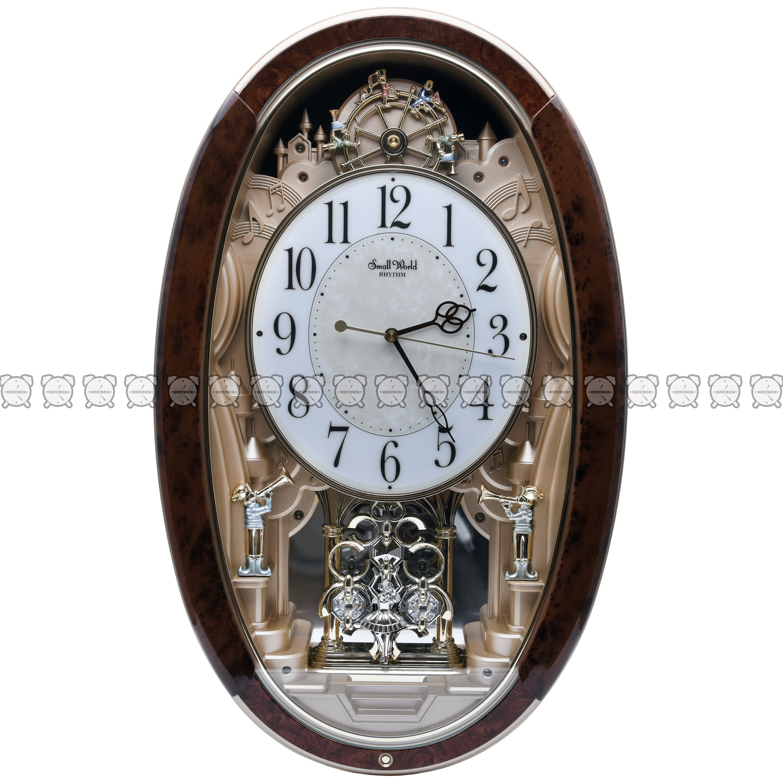 Nietypowy zegar ścienny wykonany z plastiku w kolorach brązu. Zachwyca melodiami i komponującymi się wraz z nimi elementami świecącymi oraz ruchomymi. Możliwość regulowania głośności oraz eliminowania bicia nocą. Mechanizm kwarcowy zasilany bateriami R14 (4 sztuki)
