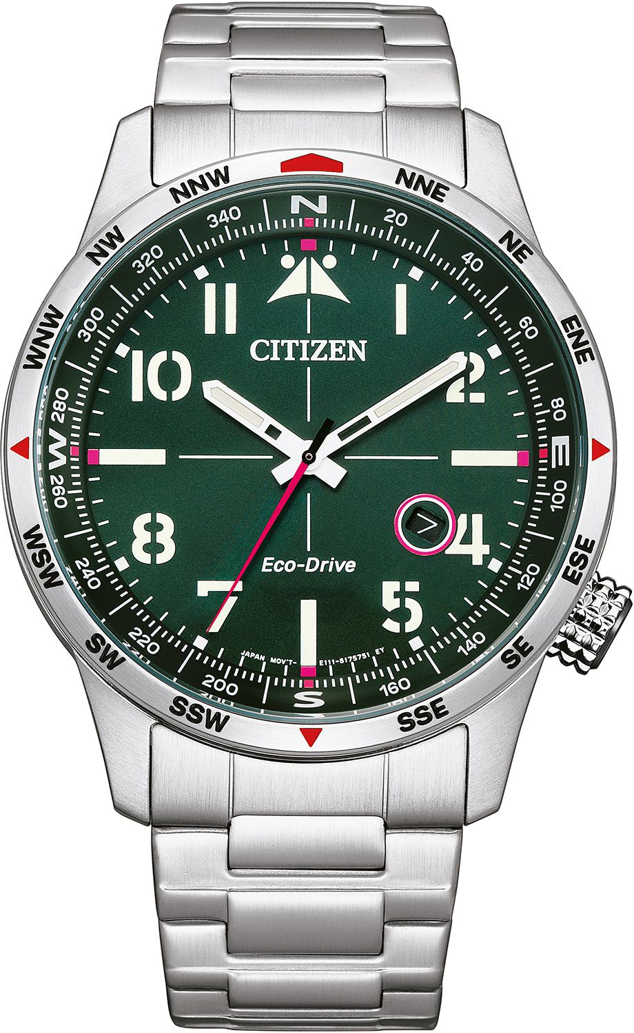 - Citizen BM7551-84X – wytrzymały zegarek solarny Eco-Drive z zieloną tarczą i stalową bransoletą. Sportowy styl i niezawodność.