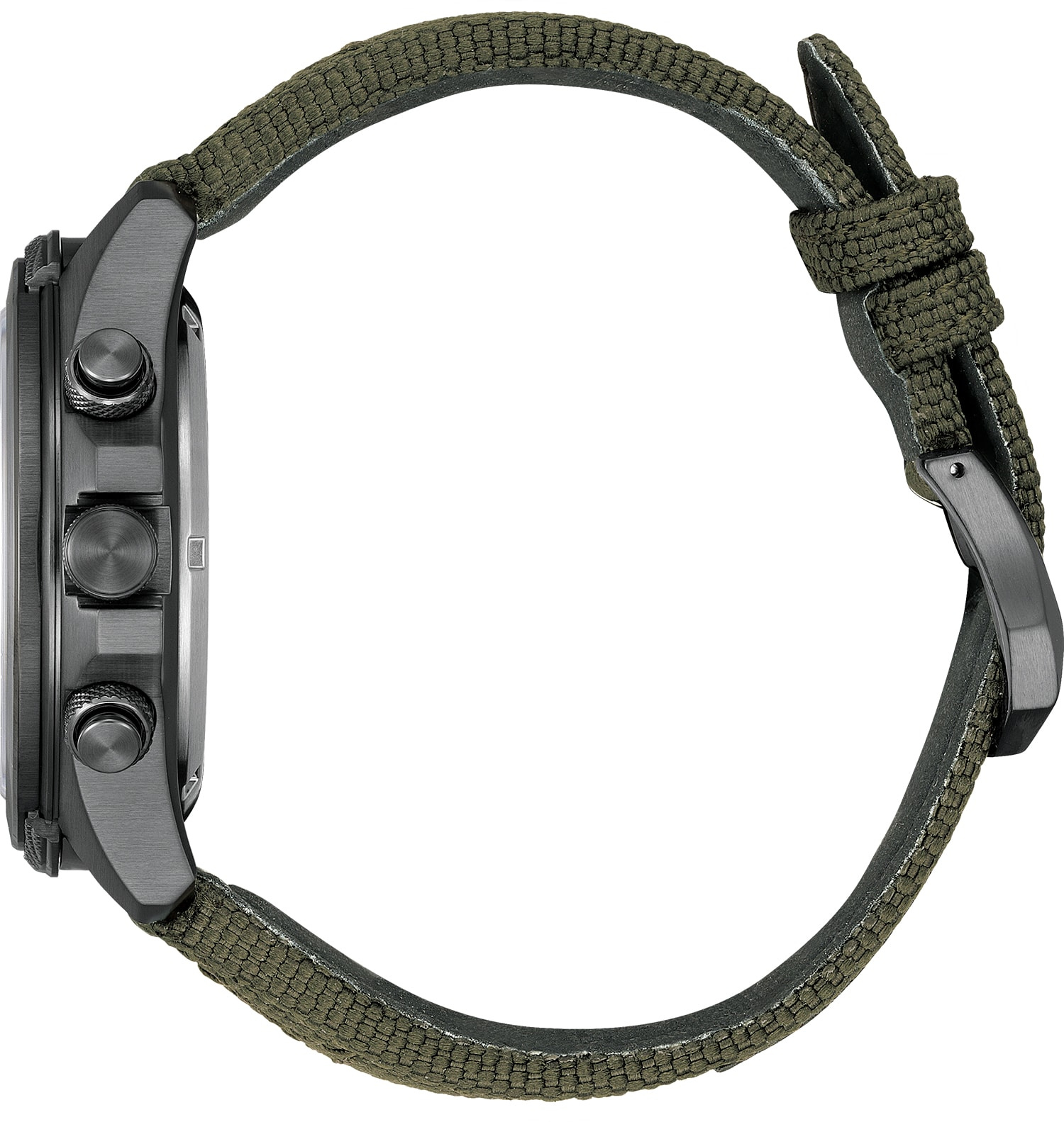 Zegarek Citizen Promaster Land JV1005-02W to także 30 stref czasowych, chronograf, wieczny kalendarz, timer oraz alarm. Wodoszczelność na poziomie 200 metrów czyni go idealnym towarzyszem dla osób, które pasjonują się sportami wodnymi, a solidny nylonowy pasek w zielonym kolorze zapewnia komfort noszenia, nawet w trudnych warunkach.