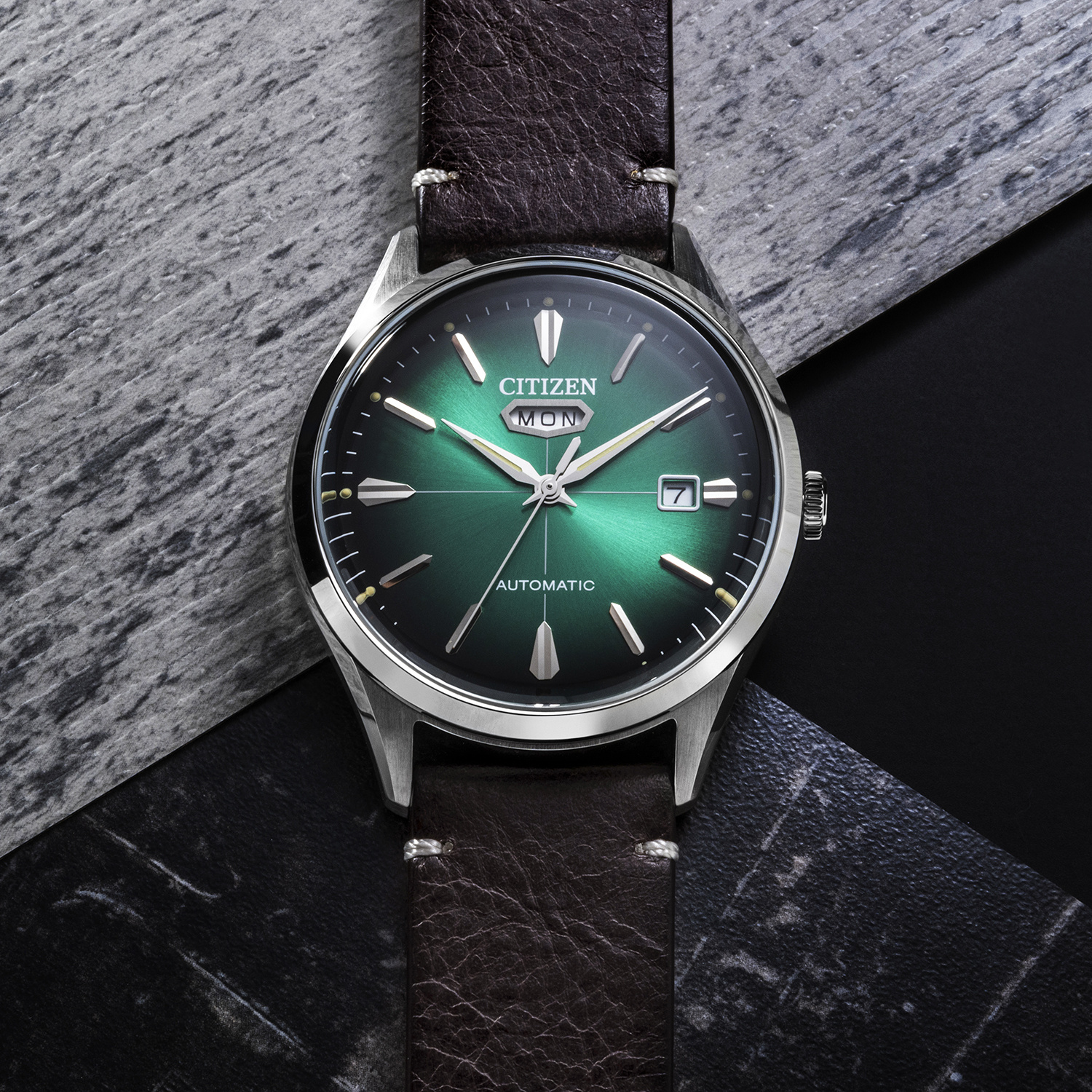 Zegarek Citizen NH8390-03XE to doskonały przykład klasycznej elegancji połączonej z niezawodnością nowoczesnej technologii. Jego wyjątkowa tarcza w intensywnym odcieniu zieleni przyciąga uwagę, wprowadzając subtelną harmonię między elegancją a nowoczesnym stylem. Zastosowanie zielonego cyferblatu w połączeniu ze srebrnymi indeksami oraz stalową kopertą nadaje zegarkowi niepowtarzalny charakter, który idealnie wpisuje się w zarówno formalne, jak i casualowe stylizacje.