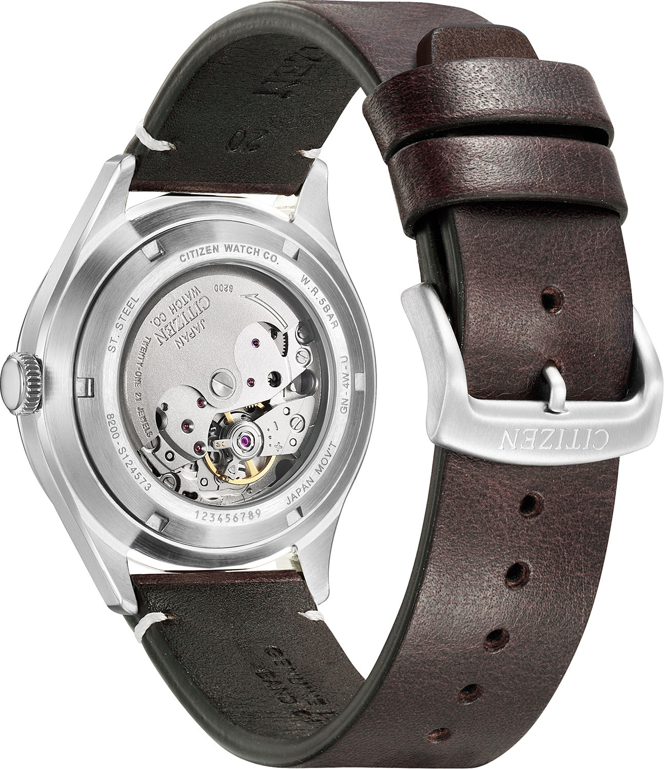 - Zegarek Citizen NH8390-03XE z zieloną tarczą, automatycznym mechanizmem i stalową kopertą – elegancja i precyzja w jednym.