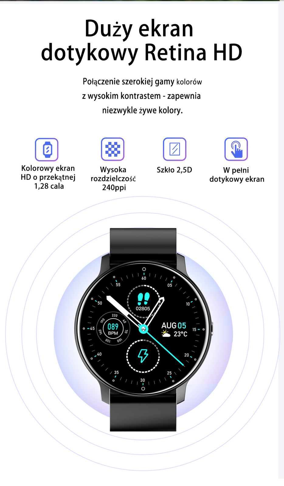 Wysokiej jakości dotykowy wyświetlacz cyfrowy IPS 1.28 cali |