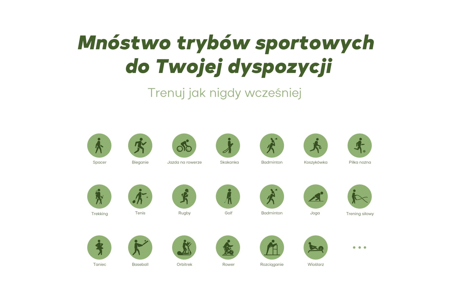 Spacer, bieg, jazda rowerem, Skoki, badminton, koszykówka, piłka nożna, siatkówka i wiele innych |
