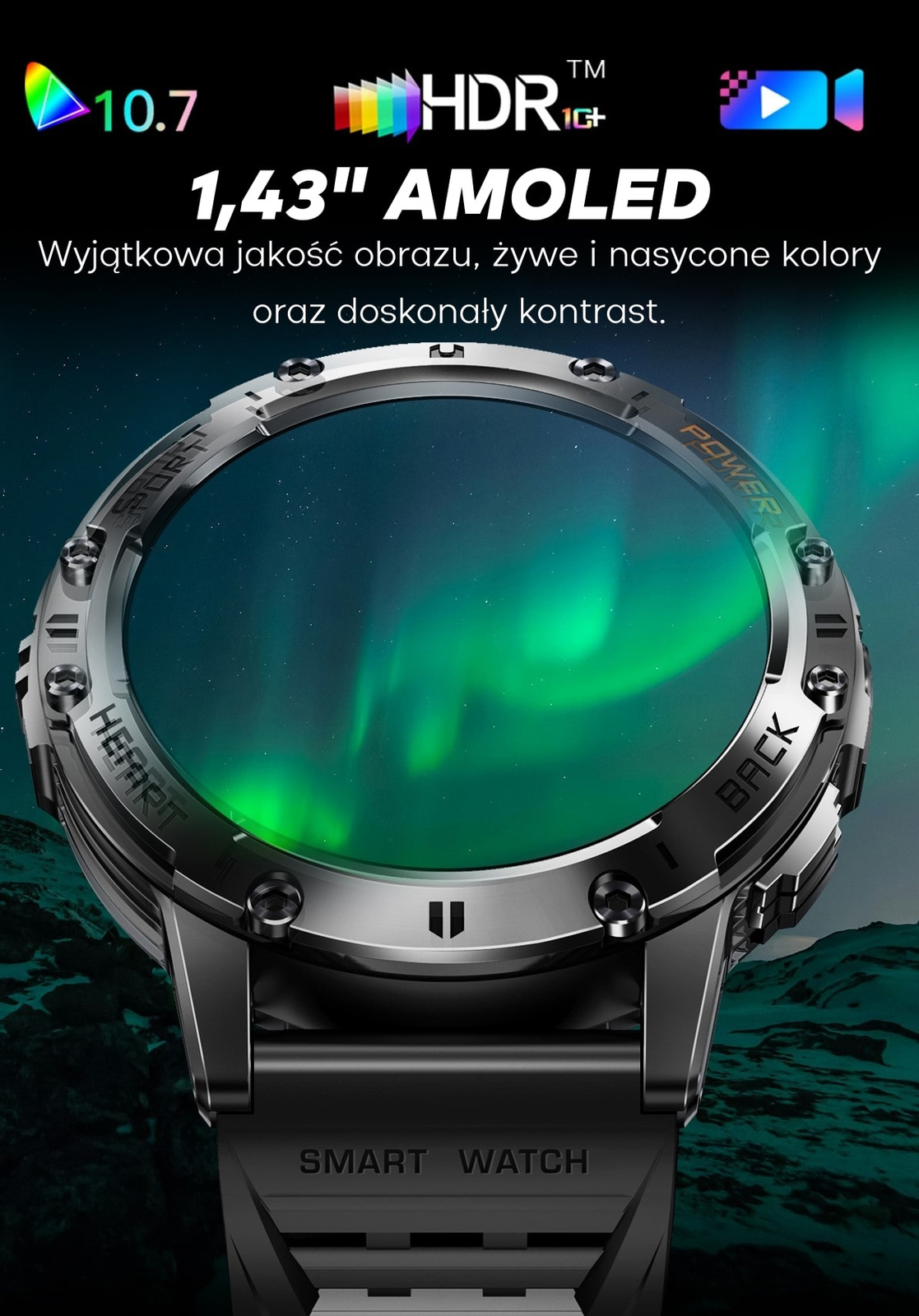 Wyświetlacz: | Wysokiej jakości dotykowy wyświetlacz cyfrowy AMOLED 1.43 cali |