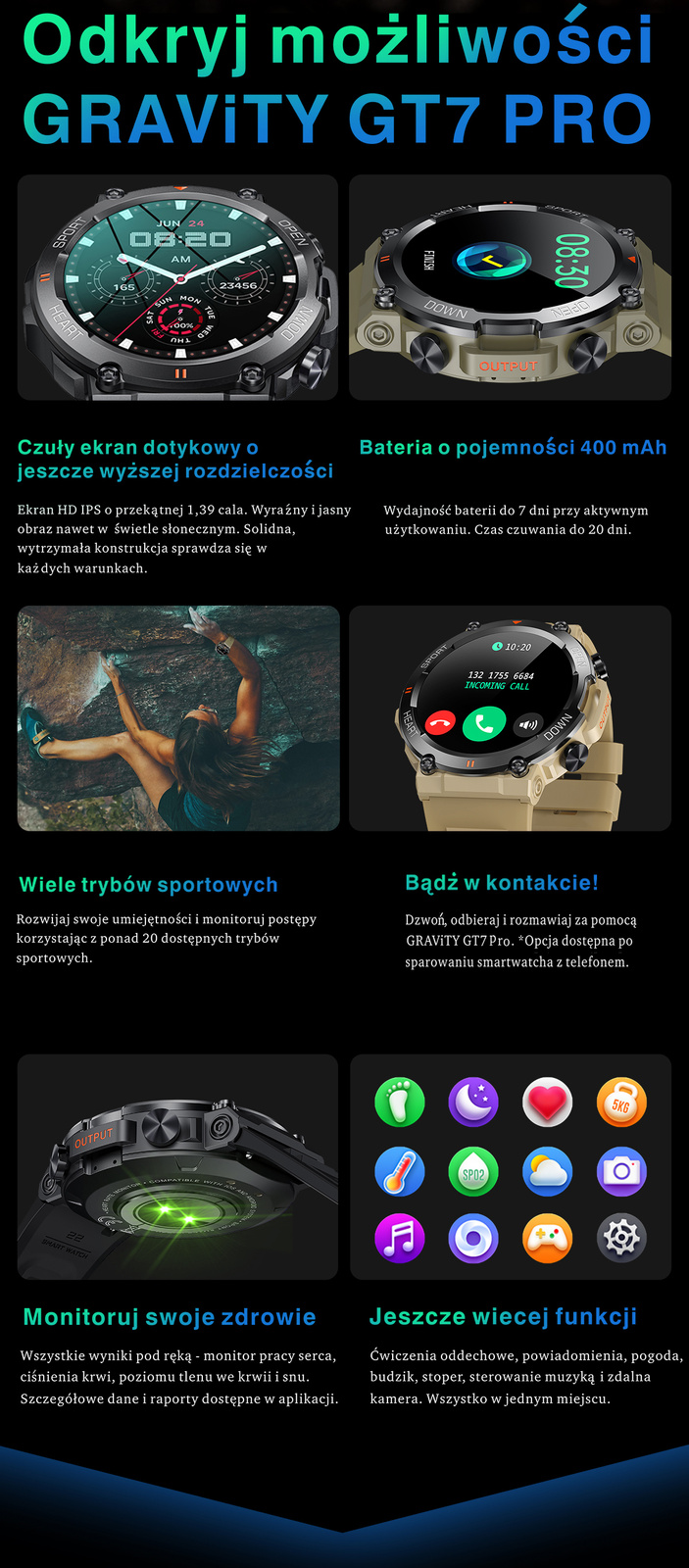 Spacer, bieg, jazda rowerem, Skoki, badminton, koszykówka, piłka nożna, siatkówka i wiele innych |