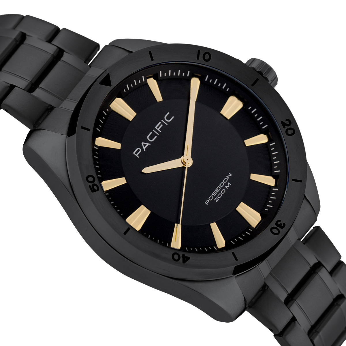 - Sportowy zegarek męski Pacific SMPB-2002 POSEIDON z wodoszczelnością 200 m, stalową kopertą i bransoletą, kwarcowym mechanizmem i nowoczesnym designem. Idealny na co dzień i do sportów wodnych.