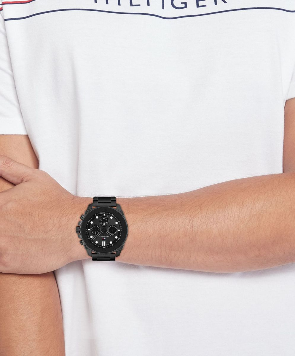 Tommy Hilfiger 1710690 to męski zegarek, który w wyjątkowy sposób łączy ponadczasowy design z funkcjonalnością na co dzień. Stalowa koperta o średnicy 48 mm i dopasowana bransoleta w czarnej kolorystyce tworzą spójną, wyrazistą całość, podkreślającą charakter tego modelu.