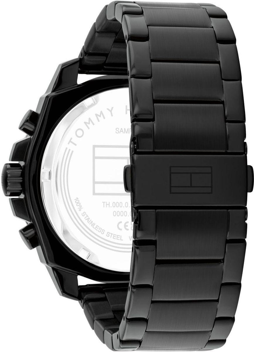 - Tommy Hilfiger 1710690 - elegancki męski zegarek w czarnej kolorystyce, z mechanizmem kwarcowym, stalową bransoletą i wodoszczelnością 50 m — idealny na co dzień i na wyjątkowe okazje.