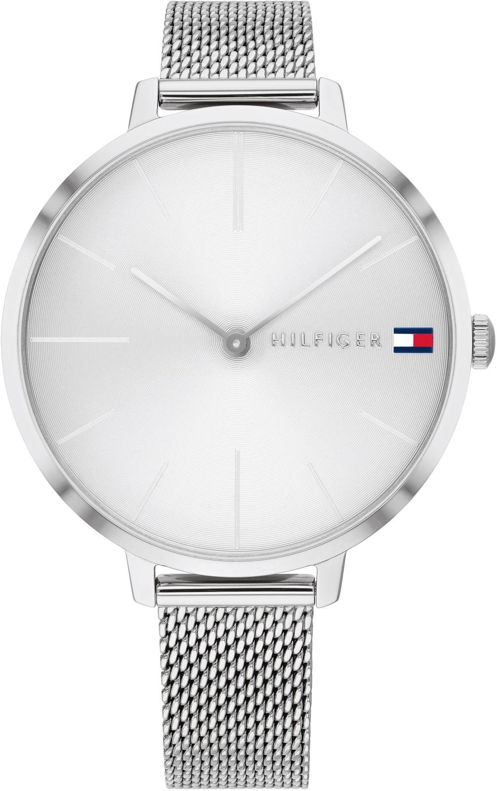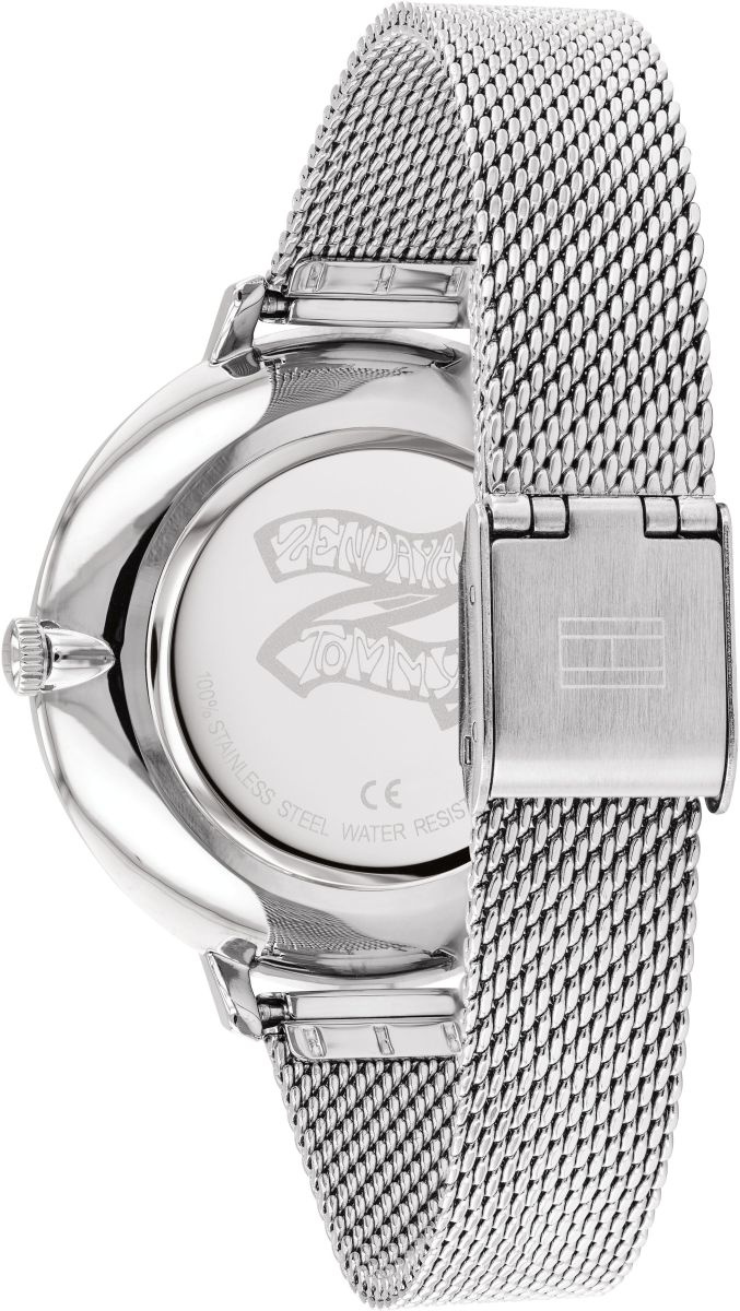 - Tommy Hilfiger 1782163 – damski zegarek w srebrnym kolorze. Minimalistyczna 38 mm koperta, bransoleta typu mesh, szara tarcza z liniowymi indeksami, mechanizm kwarcowy i wodoszczelność 30 m. Stylowy dodatek do codziennych i eleganckich stylizacji.