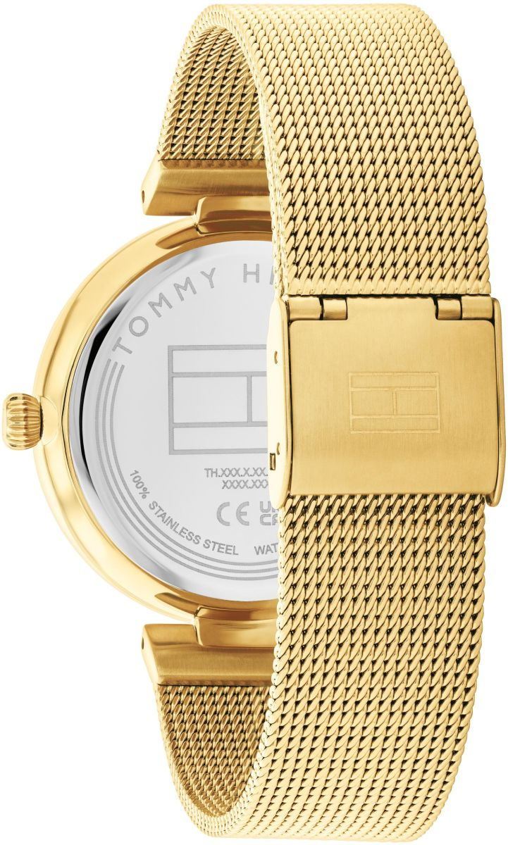 - Tommy Hilfiger 1782694 – damski zegarek kwarcowy z kopertą i bransoletą ze stali nierdzewnej, w kolorze złotym, oraz funkcjami: datownik, dzień tygodnia i 24-godzinne wskazanie czasu.