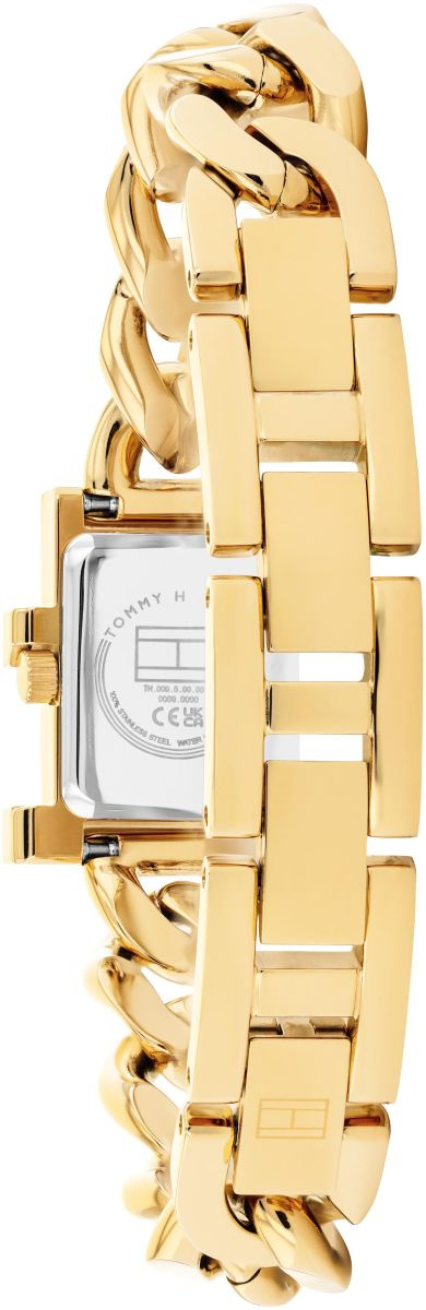 Tommy Hilfiger 1782823 to damski zegarek, który łączy modowy charakter z ponadczasową elegancją. Jego prostokątna koperta w odcieniu szlachetnego złota zachwyca smukłą linią, a delikatna stalowa bransoleta dopełnia kompozycję, nadając całości biżuteryjny, wyrafinowany wyraz.