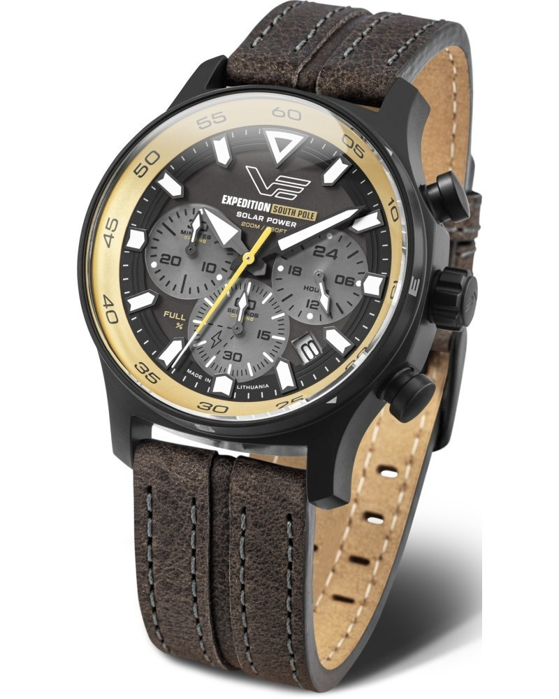- Vostok Europe VR42-592C763 – męski zegarek ekspedycyjny z solarnym mechanizmem, 200 m wodoszczelności i czarną kopertą PVD. Mocna, surowa stylistyka, brązowy skórzany pasek i limitacja 3000 sztuk tworzą wyjątkowy czasomierz dla pewnych siebie mężczyzn.